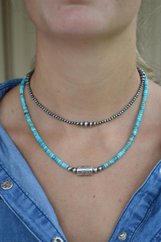 The Yori Barrel Necklace (Blue & Green Sonoran Stone Option)