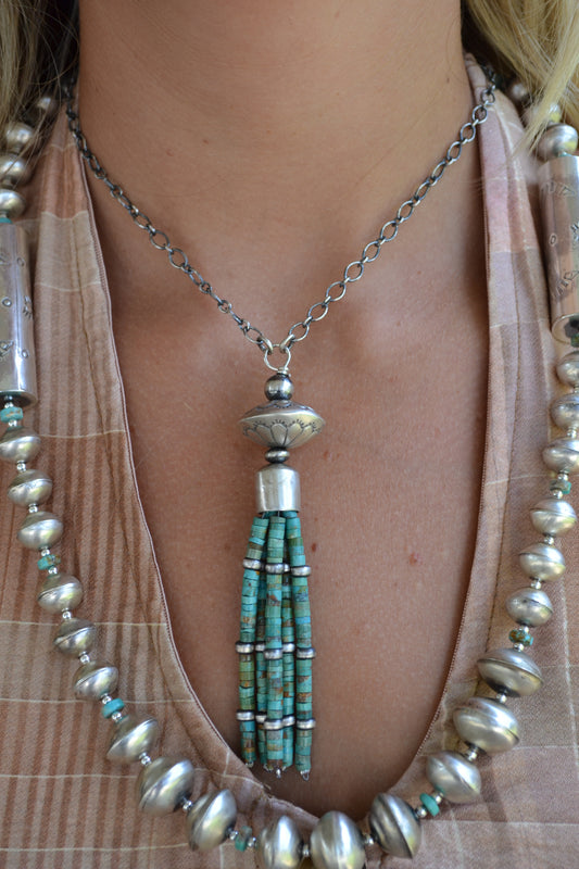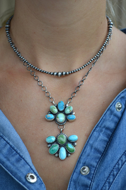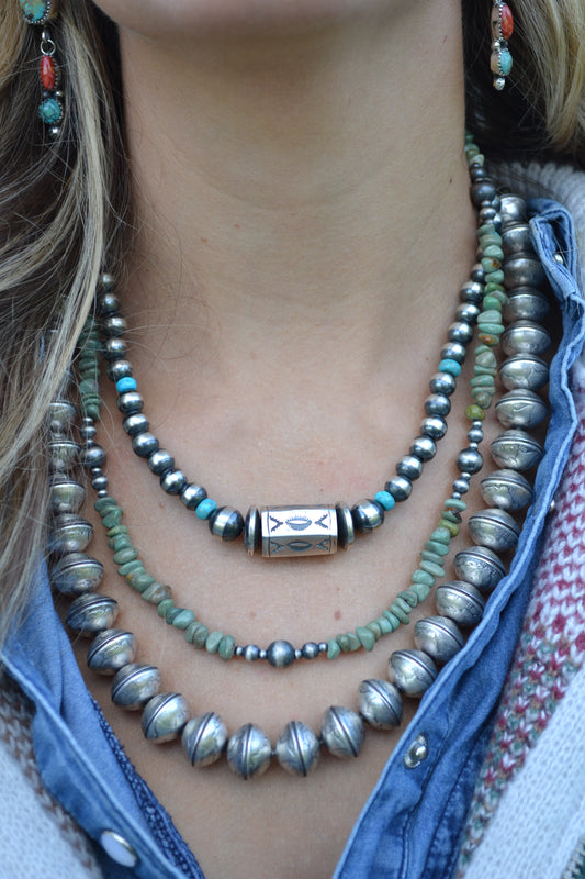The Yori Barrel Necklace (Blue & Green Sonoran Stone Option)