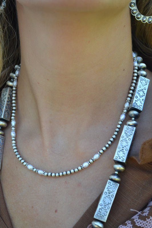 17 inch graduated Sterling Silver Pearls necklace hoop
