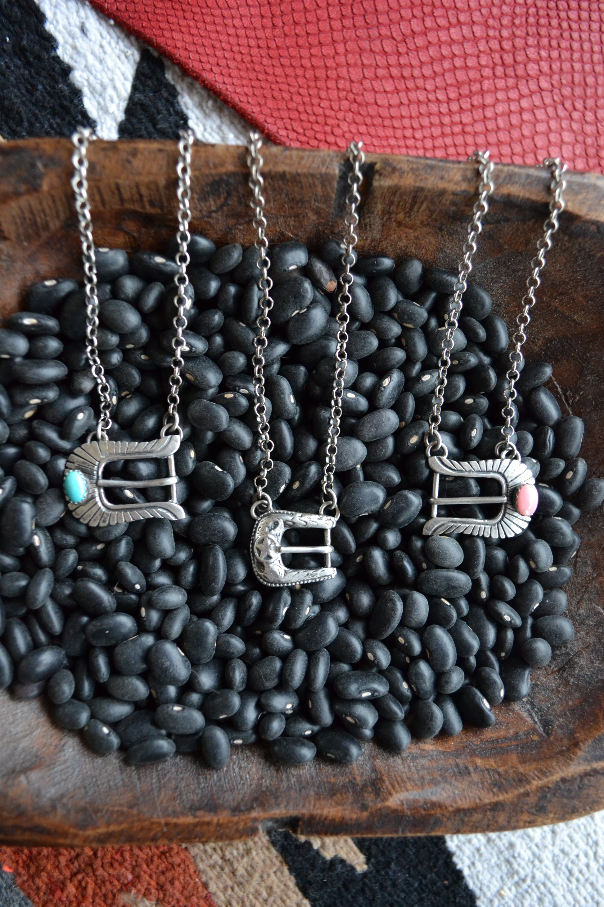 The Lil' Buckle Necklaces (Available in Pink Conch, Turquoise, & Plain Silver)