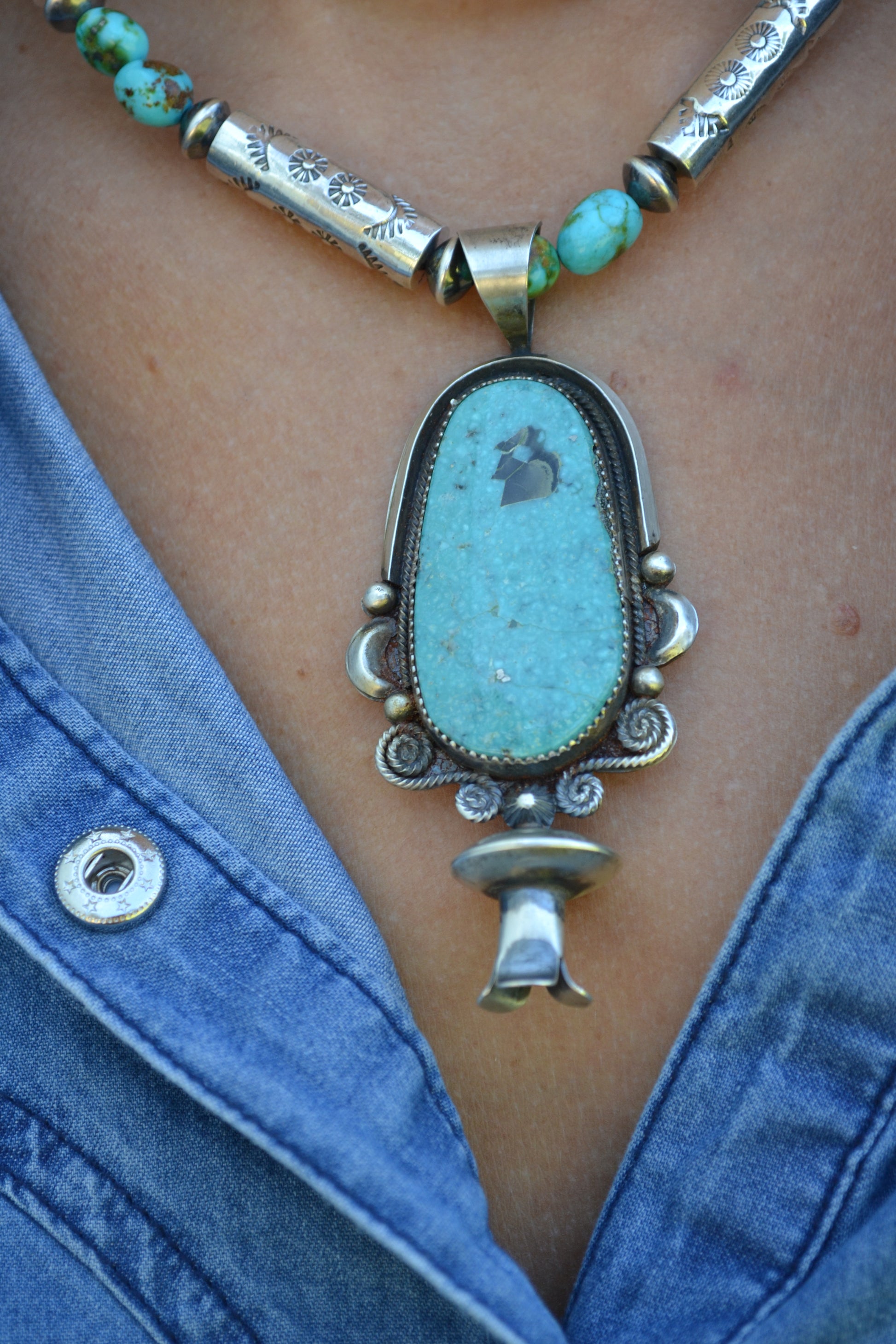 Juanita Long Turquoise Blossom Pendants
