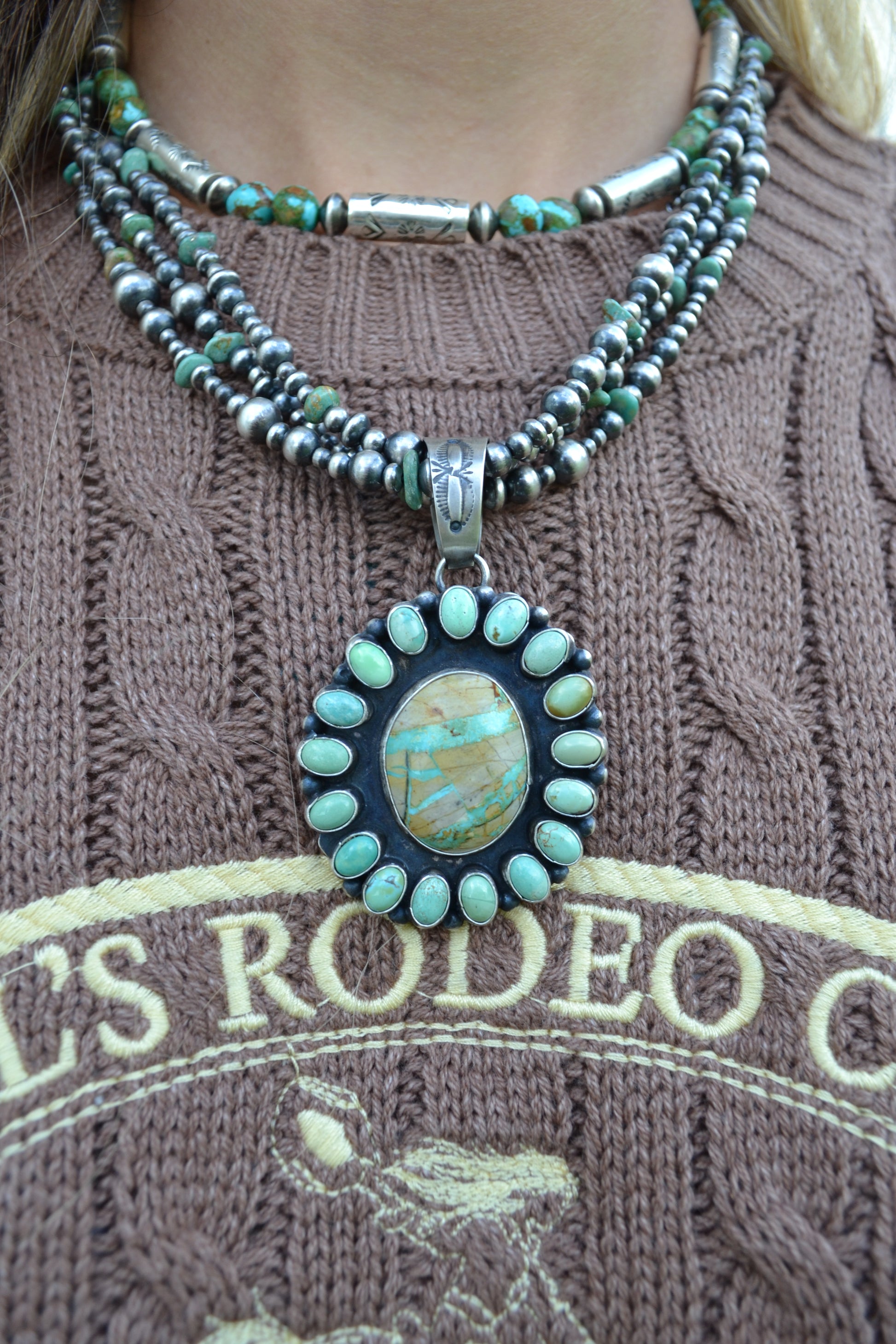 Ella Peter Royston Boulder Graduated Pearls and Pendant Set