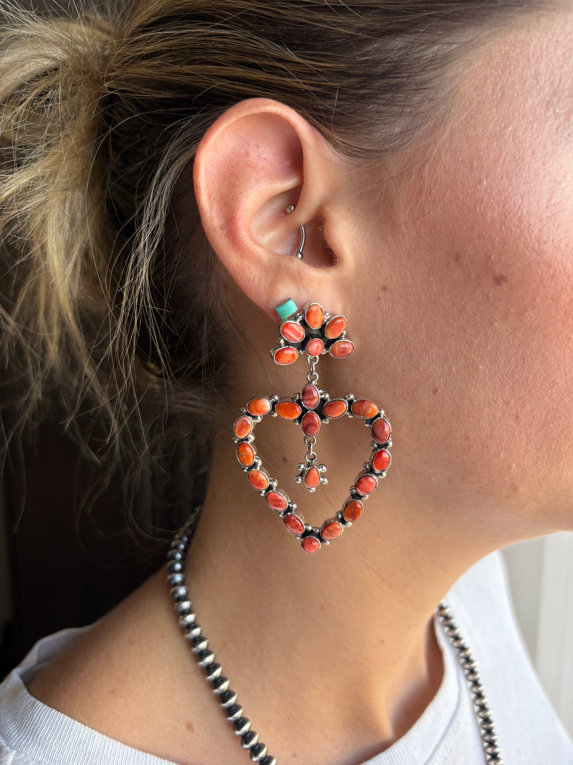 Native Made Red Spiny Heart Dangle Earrings