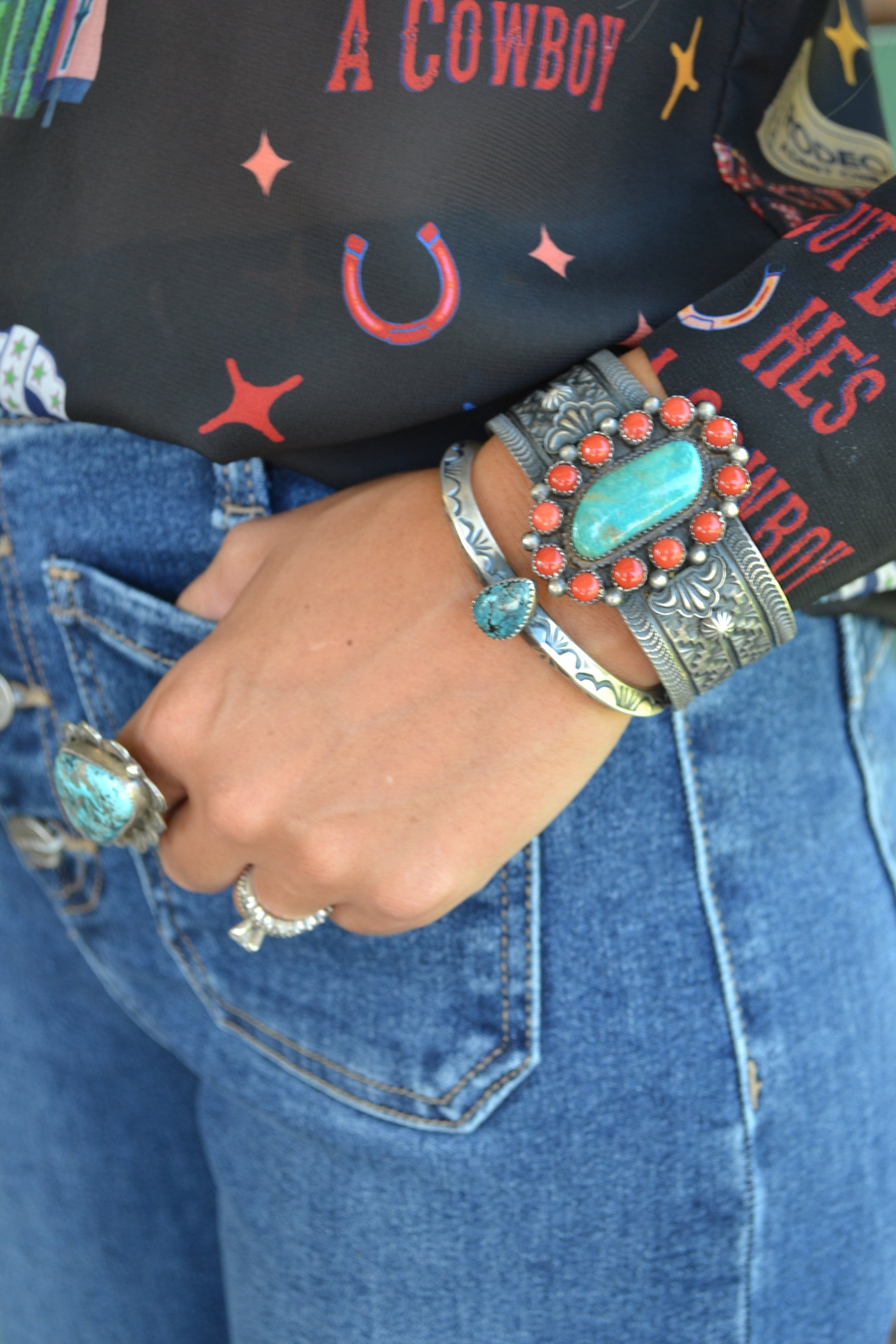Kevin Billah Red Coral & Turquoise Cuff Bracelet