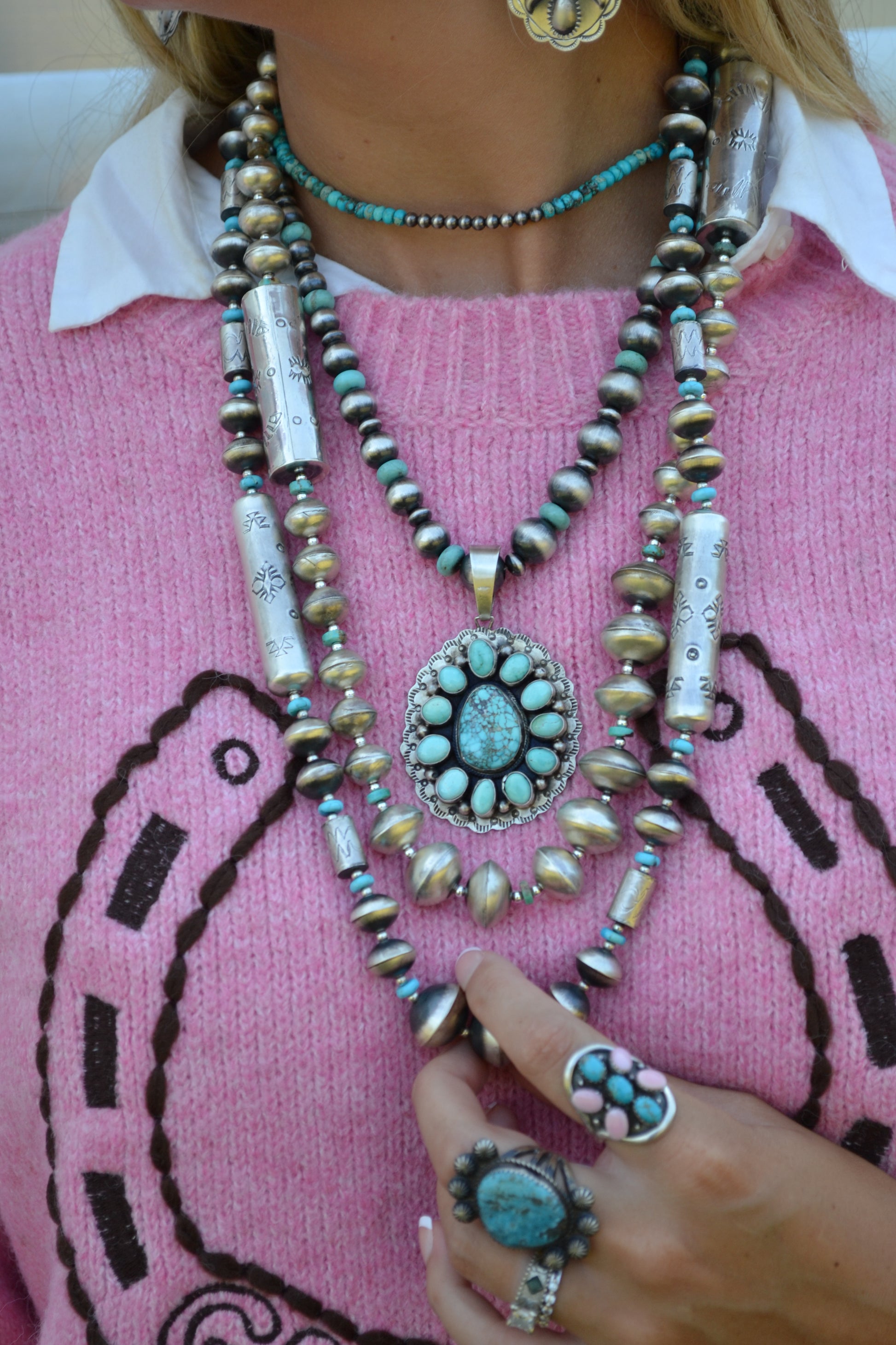 Danny Henio Turquoise Pendant & Graduated Pearl Set