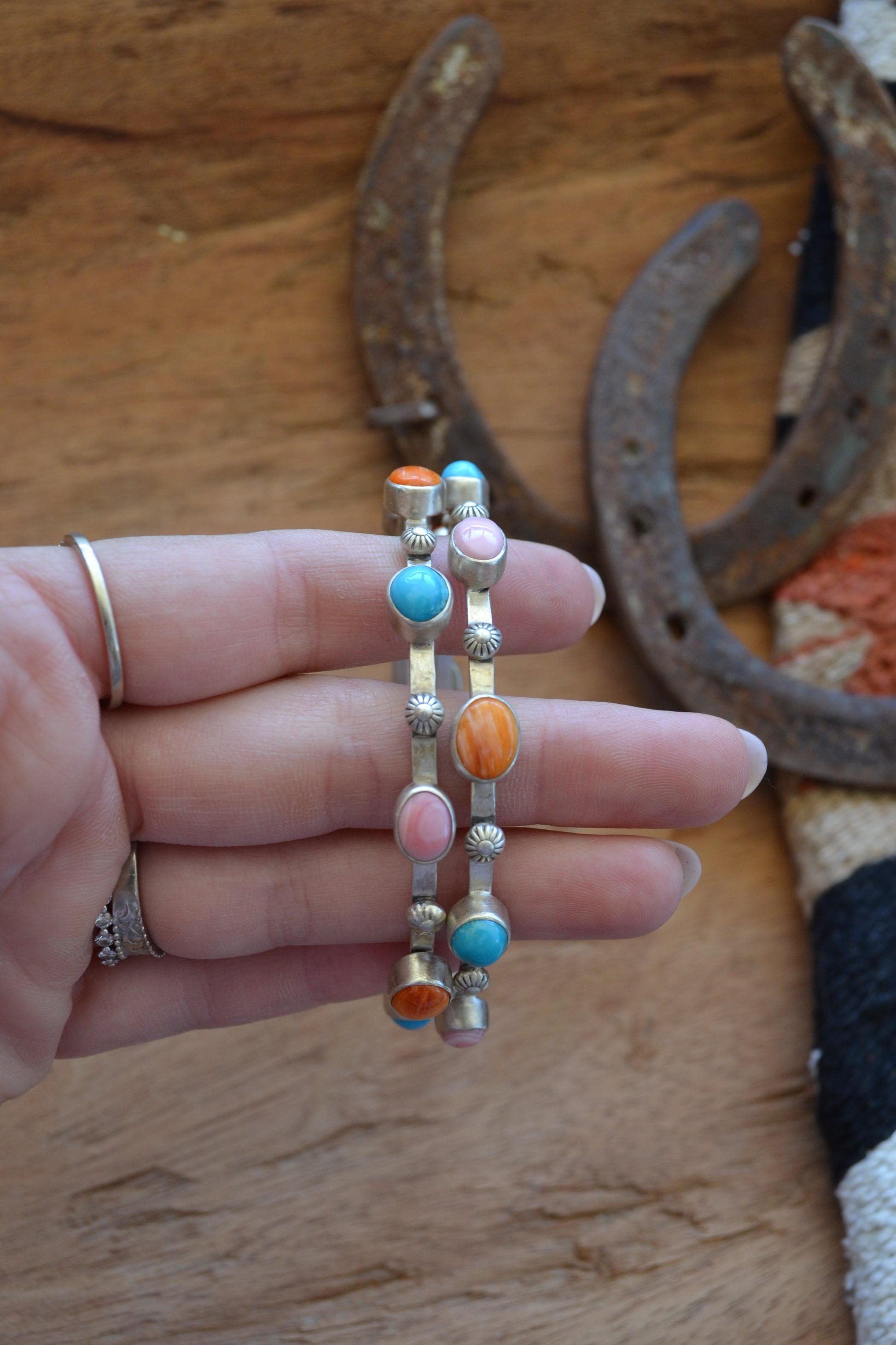 Pink Conch, Orange Spiny, & Turquoise Bangle Bracelet