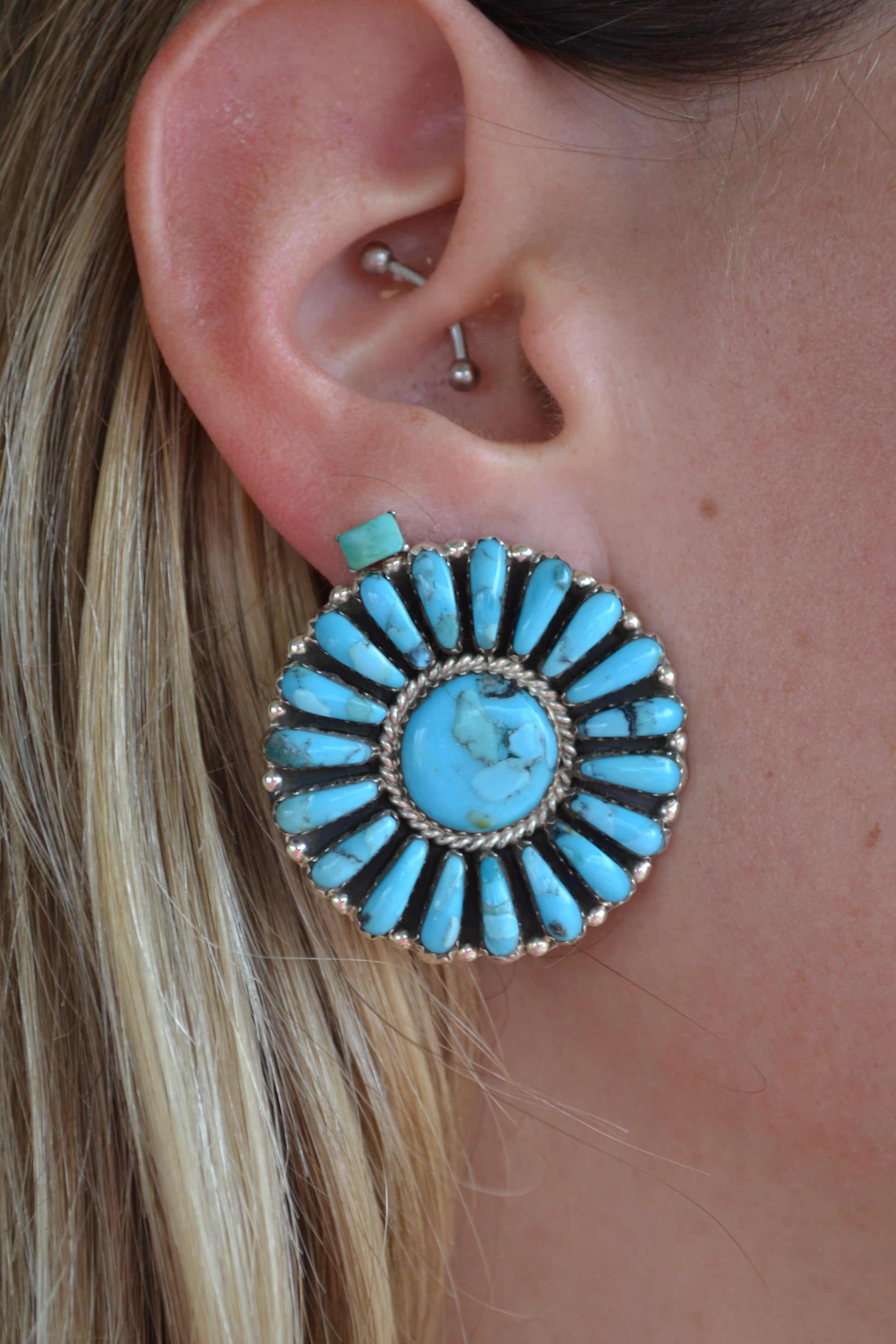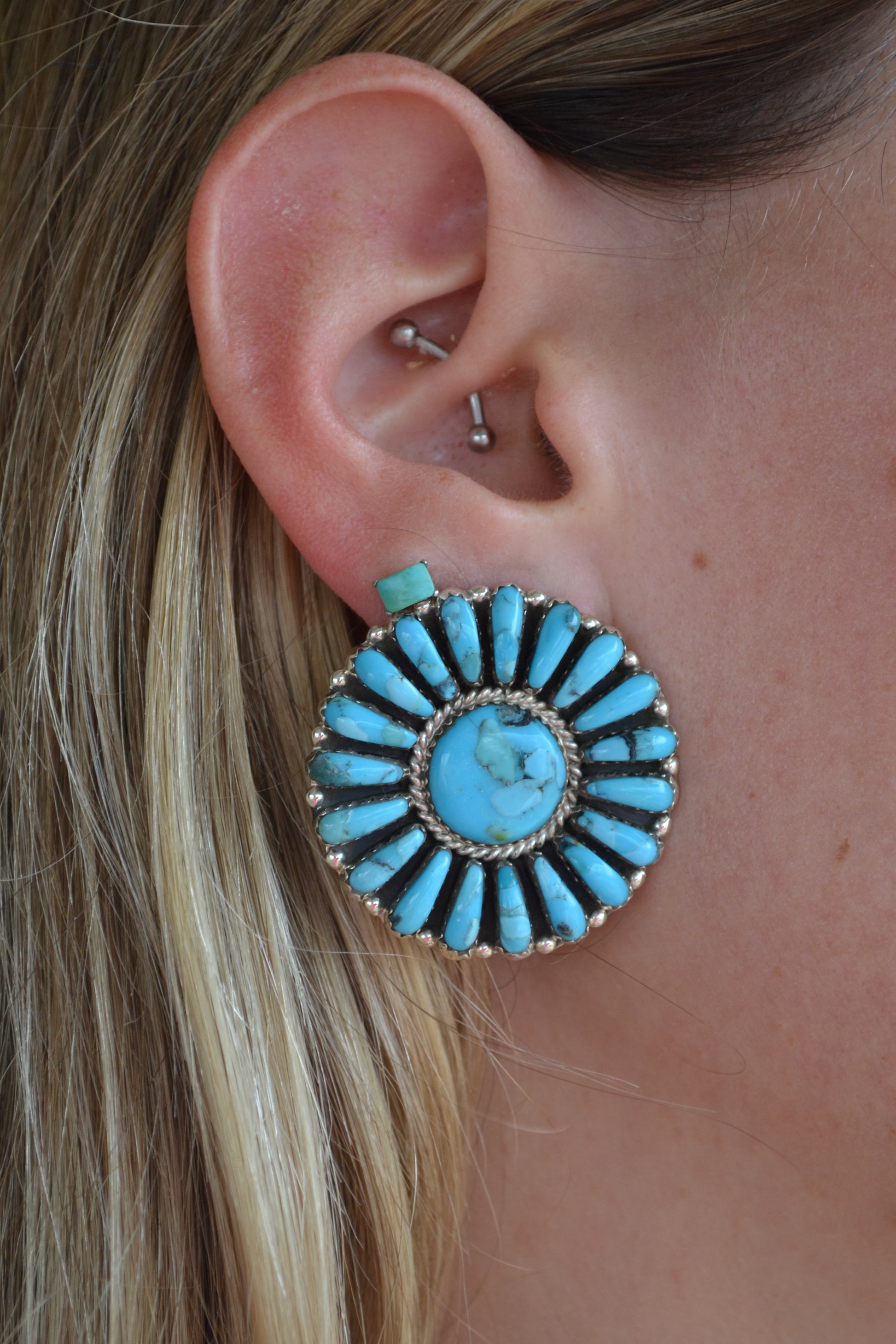 Davin Benally Sleeping Beauty Turquoise Cluster Stud Earrings