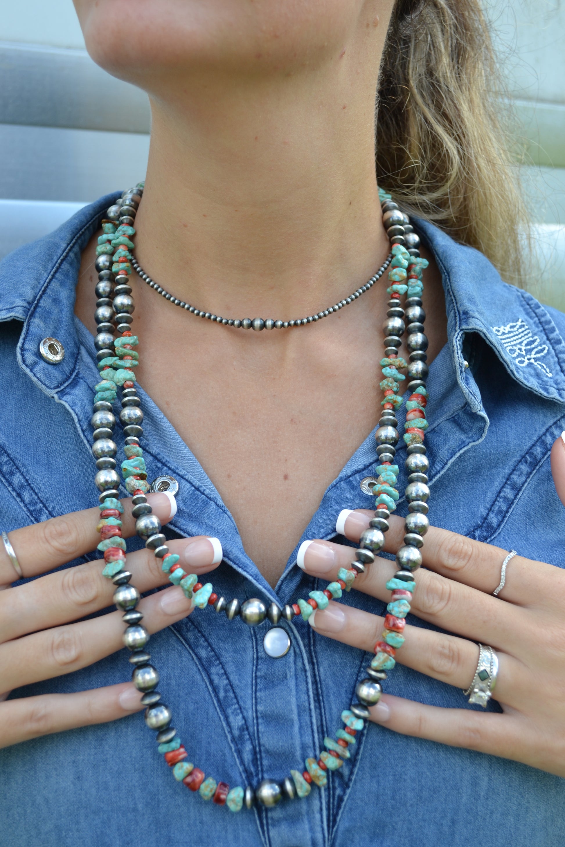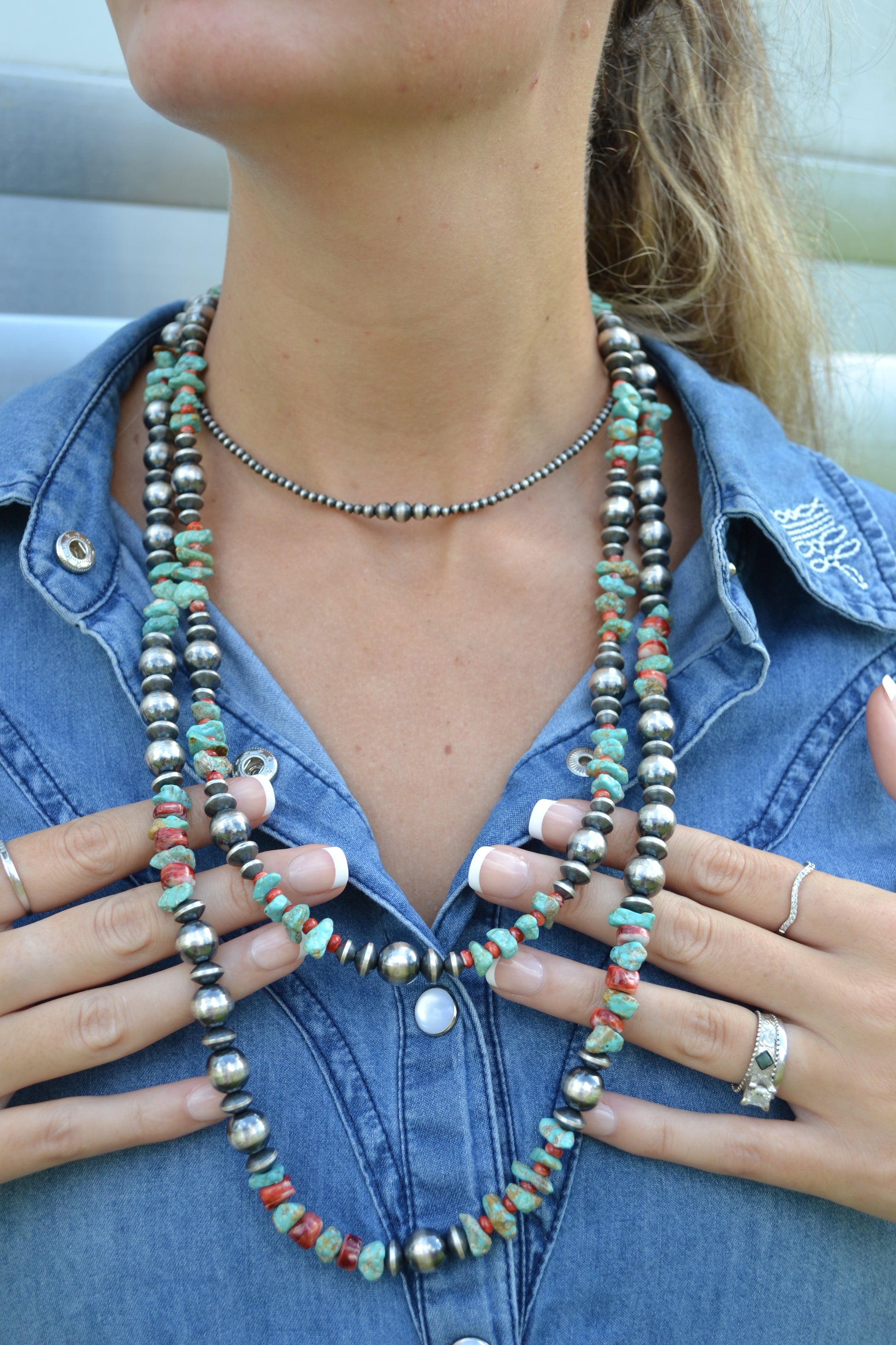 Handstrung Chimney Butte Red Spiny & Turquoise Nugget Chip Graduated Pearls