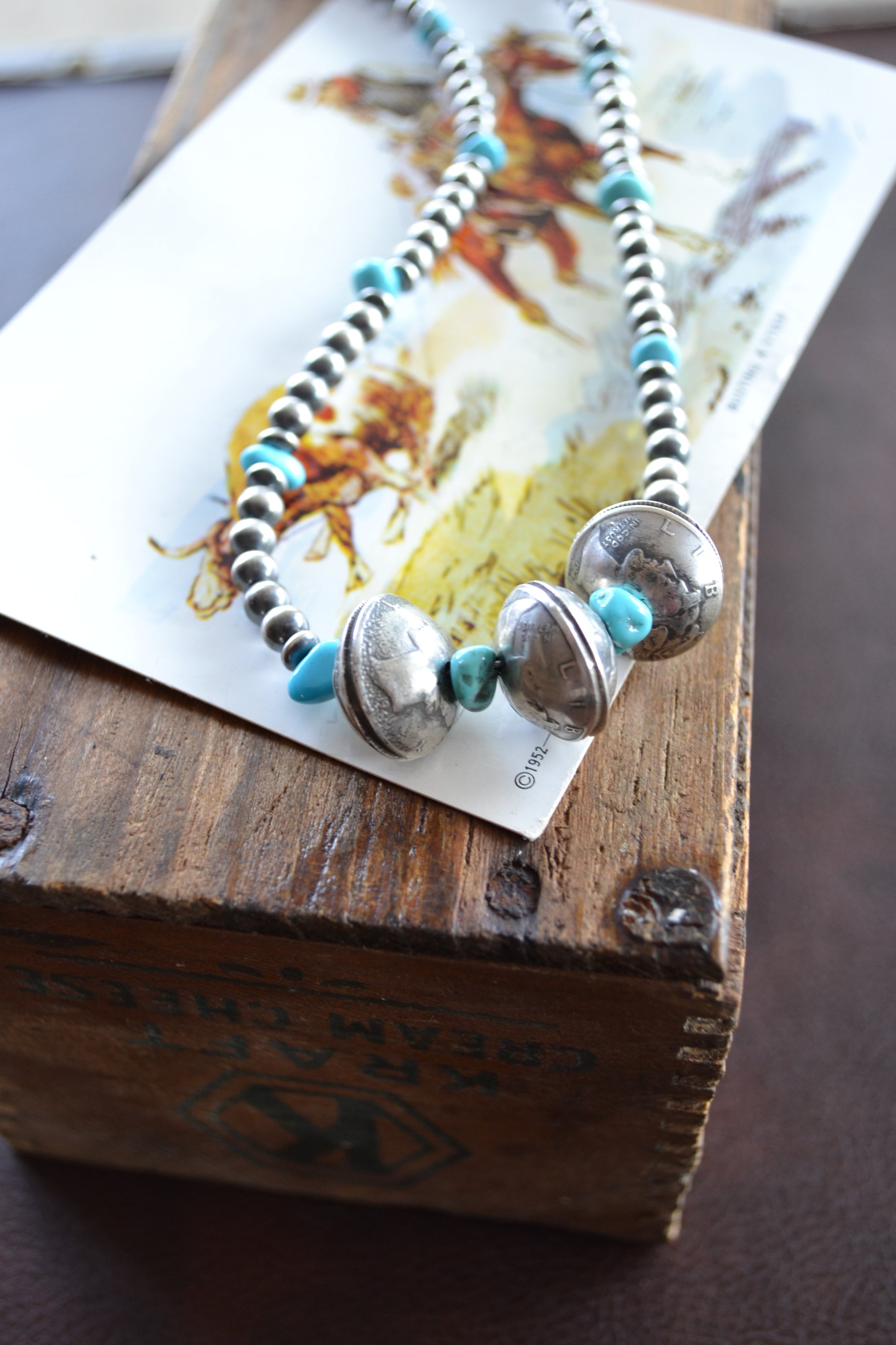 **please note - the smaller pearls are sterling handstrung pearls and mercury dimes are Navajo handcrafted.**